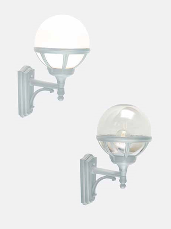 Lampa zewnętrzna, elewacyjna Bolonia marki Norlys. Bolonia w wersji kinkietu lub oprawy wiszącej jest idealnym rozwiązaniem do oświetlenie części architektury wokół wejść lub tarasów. Oprawa lampy została wykonana z aluminium w klasycznym wykończeniu, a klosz w wersji przeźroczystej lub mlecznej został wykonany z akrylu. Oprawa skierowana ku górze emituje przyjazne, symetryczne światło.
